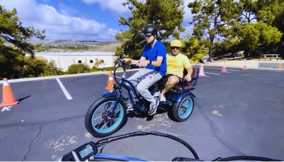 I'm usually the one driving in these videos, but today I got to be the passenger. He took me around the neighborhood and up some hills, and I wanted to share what it's like from the back. I have to say, it's pretty comfortable back here. There's enough room for a small child or another smaller adult, but two of me would be a tight squeeze! And I was wearing my seatbelt, of course.We were in level five pedal assist, and we were going about 13 mph. It's such a nice way to get around and feel the breeze! Then, we came to a bigger hill on the left, and Colton took me up. That's the way to ride! We tried to see if we could hit 20 mph. We got to 18, which is pretty good! It felt great. We just took a quick trip around the neighborhood. Honestly, I don't usually get to ride in the back because I'm always steering, but the seatbelt kept me secure, and I never felt off balance. For Colton, with me at 225 pounds, that hill was a bit challenging.