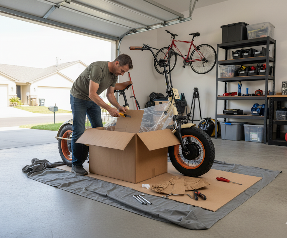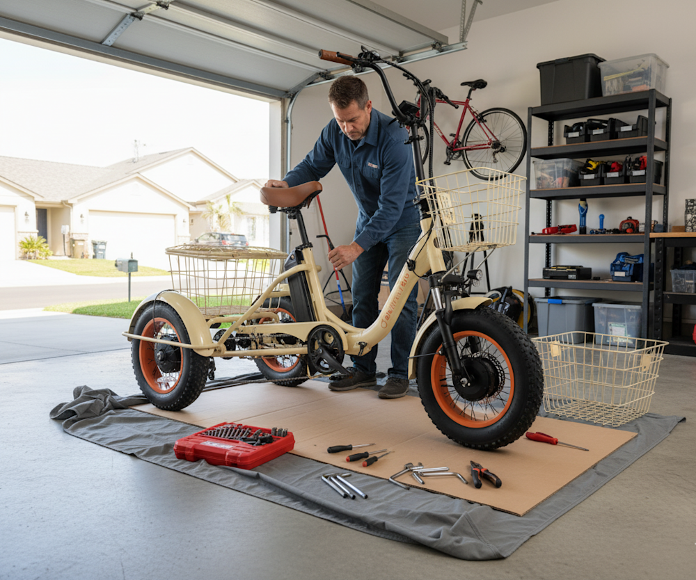 This guide walks you through what arrives at your door, how to assemble the Easy Transit folding e‑trike from box to ride‑ready, how to operate it, and key weight notes to help with transport.