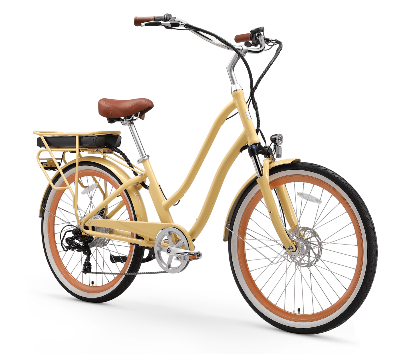 This hybrid cruiser style EVRYjourney 7-speed 500 Watt Bicycle with 26-inch wheels from sixthreezero is perfect for cruise, leisure, and commute.