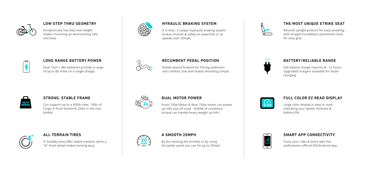 The most unique etrike seat in the market. Slide back & forth and up & down to find your perfect position.